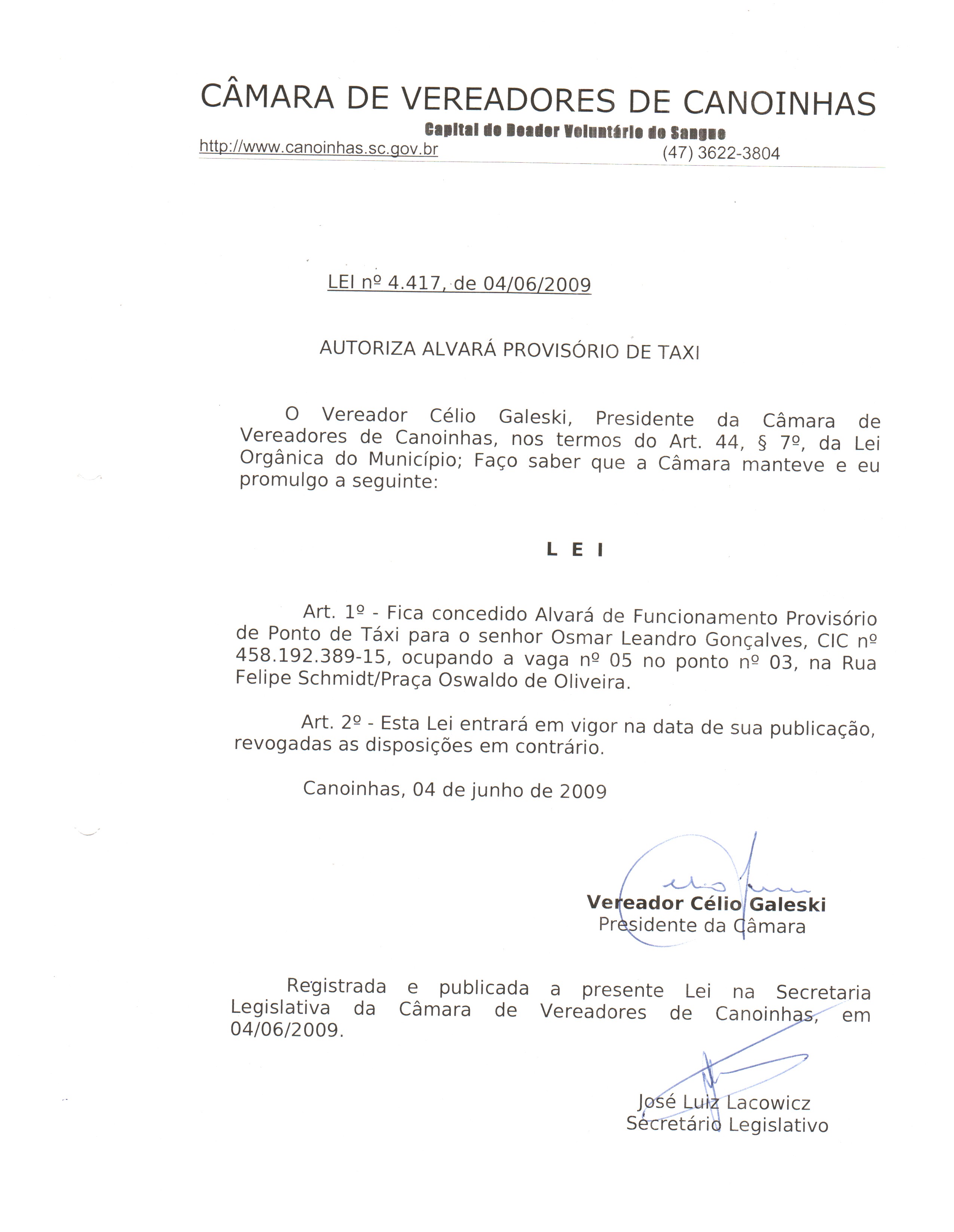(Projeto de Lei Ordinário nº 16 de 2009)