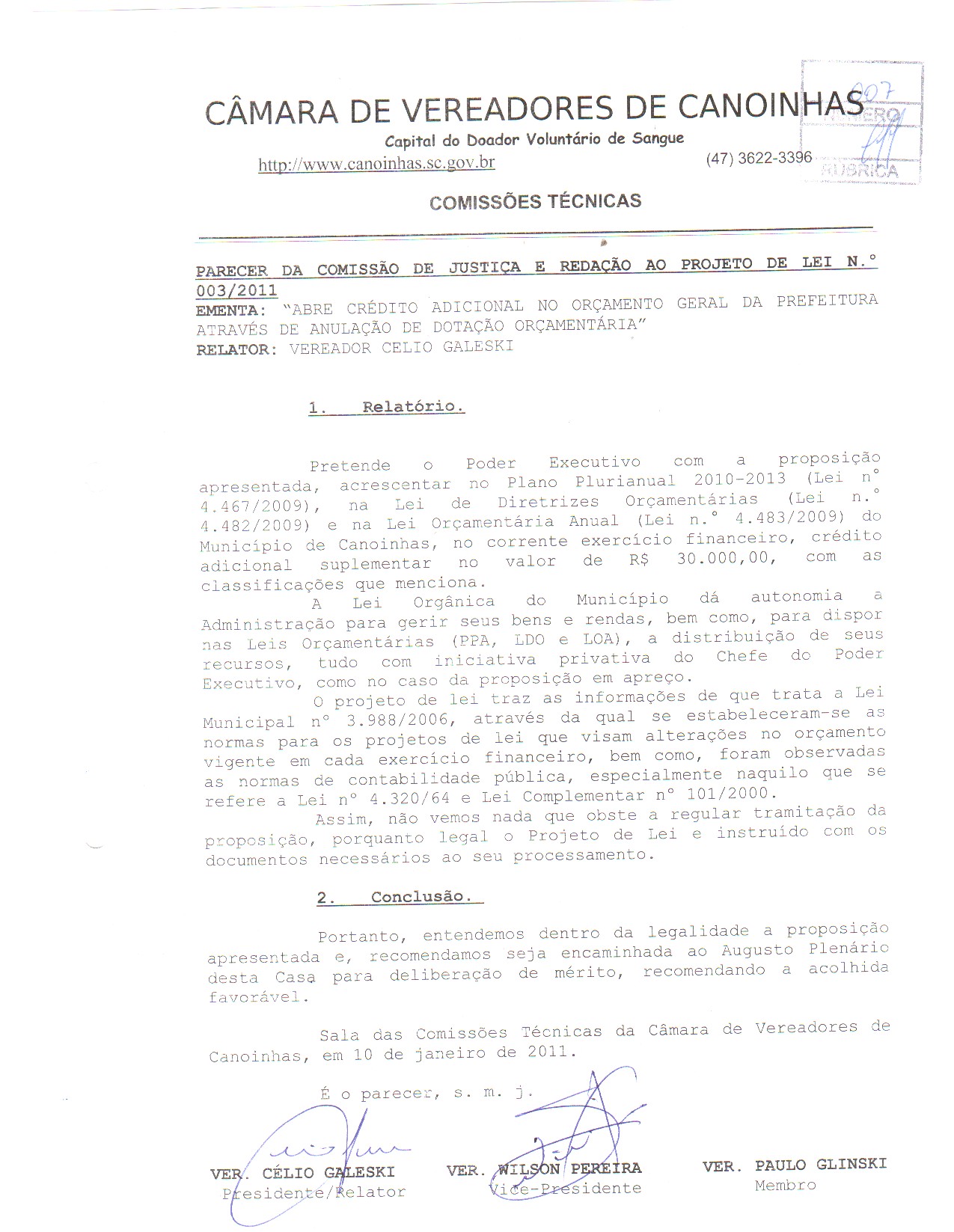 | Comissões Técnicas | Parecer | 10/01/2011 | Comissão de Justiça e redação | 244.jpeg |