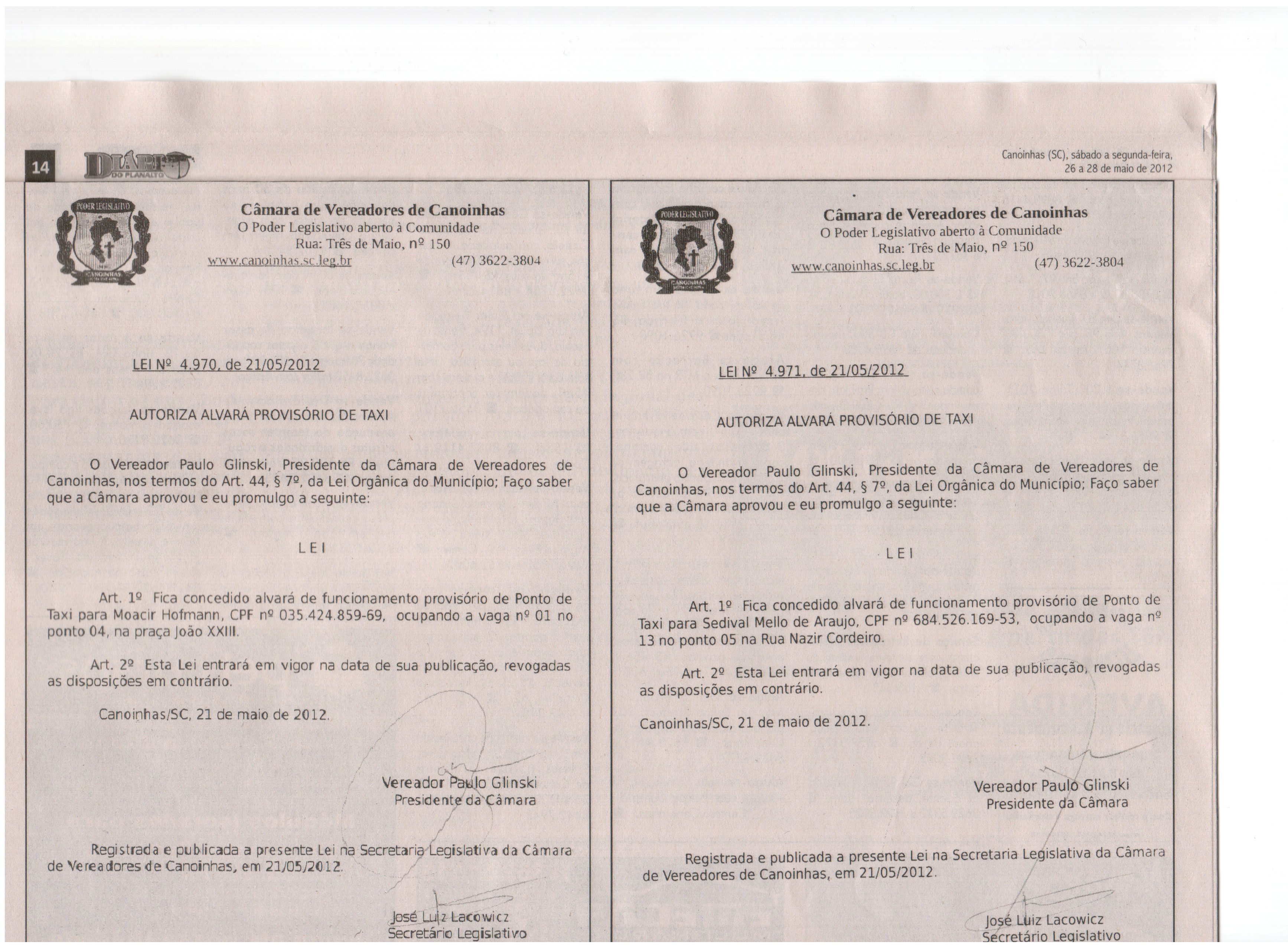 | PUBLICAÇÃO | Avulso | 26/05/2012 | VEREADOR- PRESIDEN TE PAULO GLINSKI | 854.jpeg |