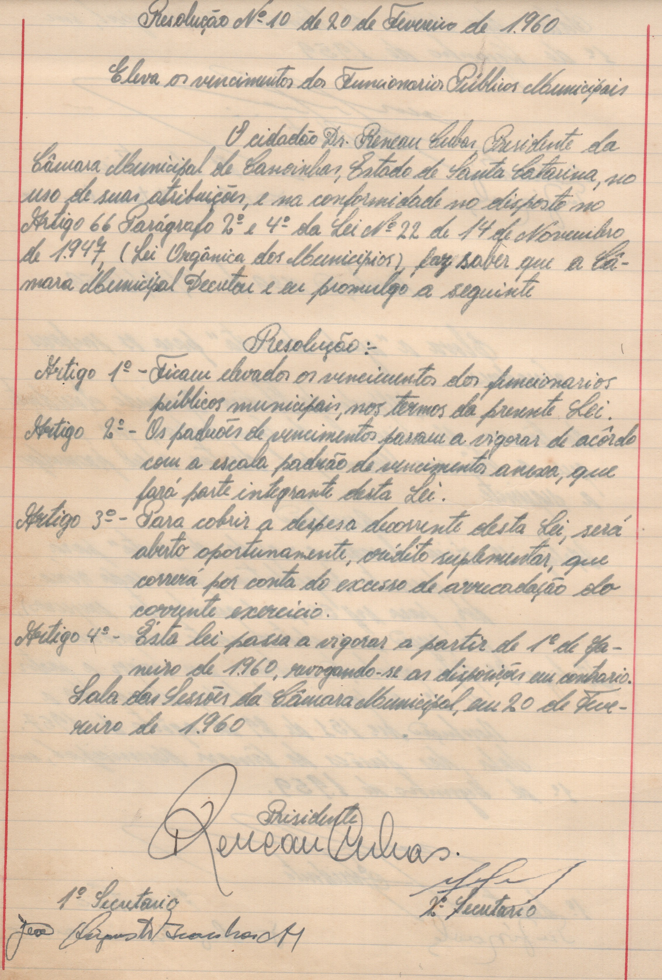 Resolução nº 10, de 20 de fevereiro de 1960